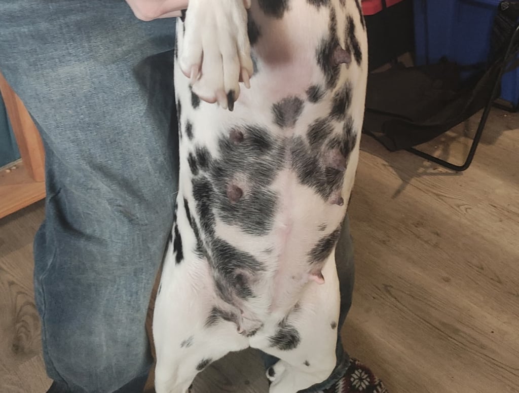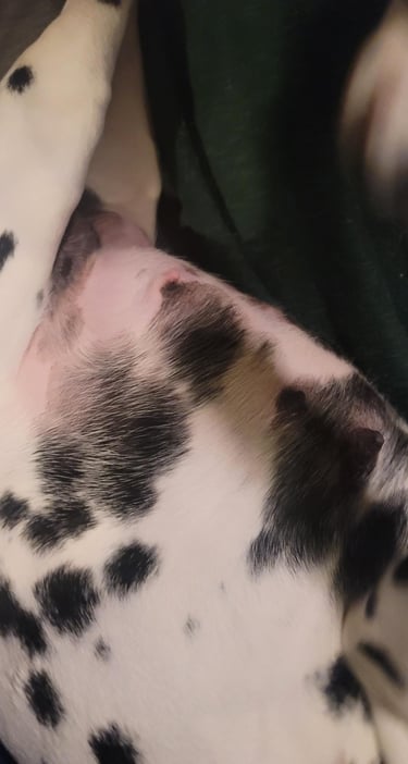 Callie is thru her morning sickness and being picky about eating. She is now just starting to show signs now that her appetite is back. She also has gotten into the SUPER CLINGY MODE! All Dals don't know what personal space is but this is worse than usually. We are only weeks away from getting XRAYS and already signed 1 contract.